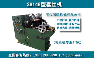 邢臺市瑞捷機械制造有限公司專業(yè)生產(chǎn)圓鋼套絲機,鋼管套絲機兩大系列,其特點主要展現(xiàn)為機頭的優(yōu)化改進(jìn),大幅度提高了加工螺紋絲頭的精確度和工作效率,有效解決了本行業(yè)在加工絲扣上端部易扭轉(zhuǎn)變形(絲扣加易擴(kuò)口)、配件損耗高、加工效率低的技術(shù)難題。